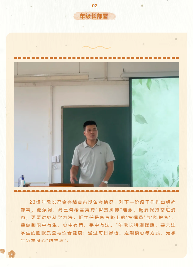 在职教高考备考进入关键阶段的节点,中职部2023年级以“齐心协力,聚力高考”为主题举办班主任沙龙活动。全体23级班主任、年级长齐聚一堂,通过经验分享、案例剖析与工作部署,凝聚育人合力,为冲刺高考夯实基础。本次沙龙由23级年级长江晴主持。