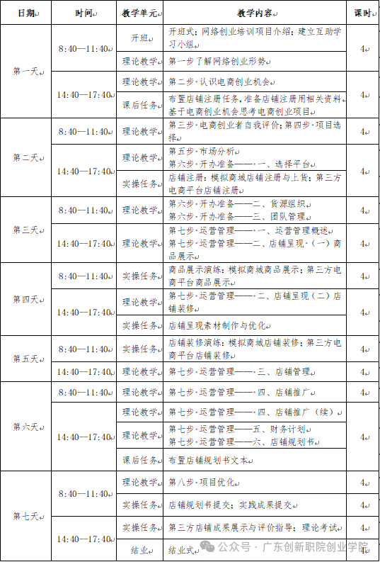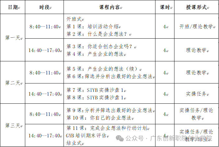 (3)课时安排:共3天(24课时),采用工作日全天授课模式。
