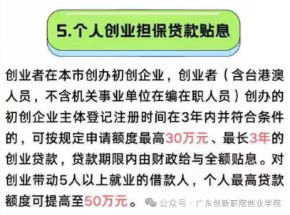 (1)创业基金扶持:毕业五年内成功注册公司,可申报《广东创新科技职业学院大学生创业基金》。