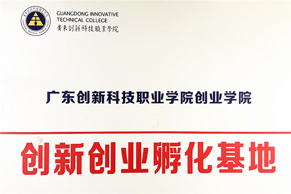 学校先后建立了“广东创新科技职业学院大学生创业园”、“广东创新科技职业学院大学生创新创业孵化基地”、以及与企业合作共建的5个大学生创新创业基地,基地面积共4910平方米。作为大学生创业教育实践平台,先后入驻104个学生创业团队,约680学生以此为平台开展创业实践活动。学校投入了50万元大学生创新创业基金,目前已对多个进驻创新创业孵化基地的优秀学生创业团队给予2—5万元创业基金资助扶持、场地免租等多种优惠措施予以扶持。