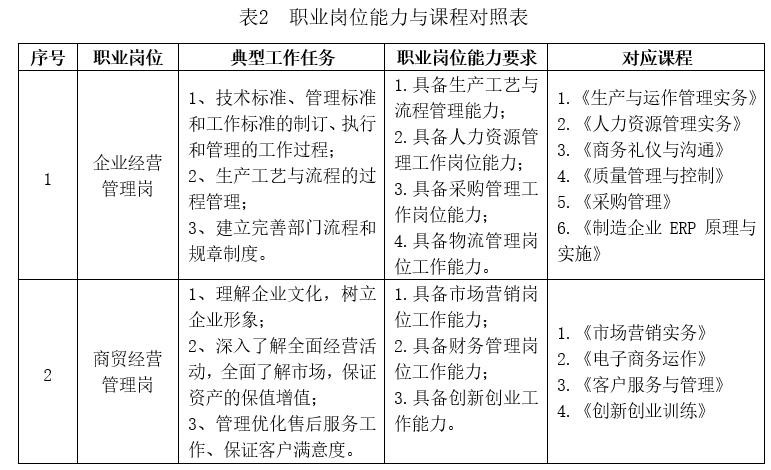 专业核心课程:《生产与运作管理实务》、《人力资源管理实务》、《市场营销实务》、《采购管理实务》、《企业物流管理实务》。