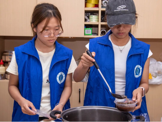 活动开展时,学院学生第二党支部书记何碧银带队,入党积极分子携烹饪与中西面点工艺专业学生打造的 “定制版暖心糖水” 前往社区公园,糖水均按专业标准分装成小份,方便老人取用。分发中,老人们感受专业服务贴心,有老人说:“孩子们用学问做的糖水,喝着暖到心里,这是党和学校培养的好青年,用本事帮我们老百姓!” 这场活动,让学院专业优势真正转化为服务民生的力量,也让 “艰苦奋斗、服务人民” 的红色精神通过专业服务传递给社区长辈。