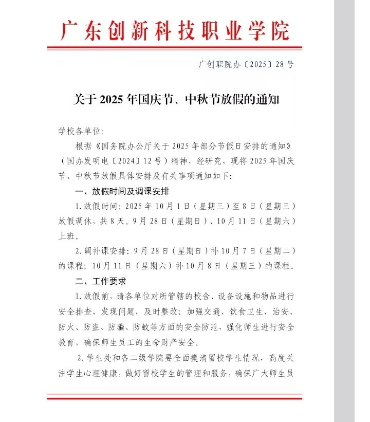 关于2025年国庆节、中秋节放假的通知