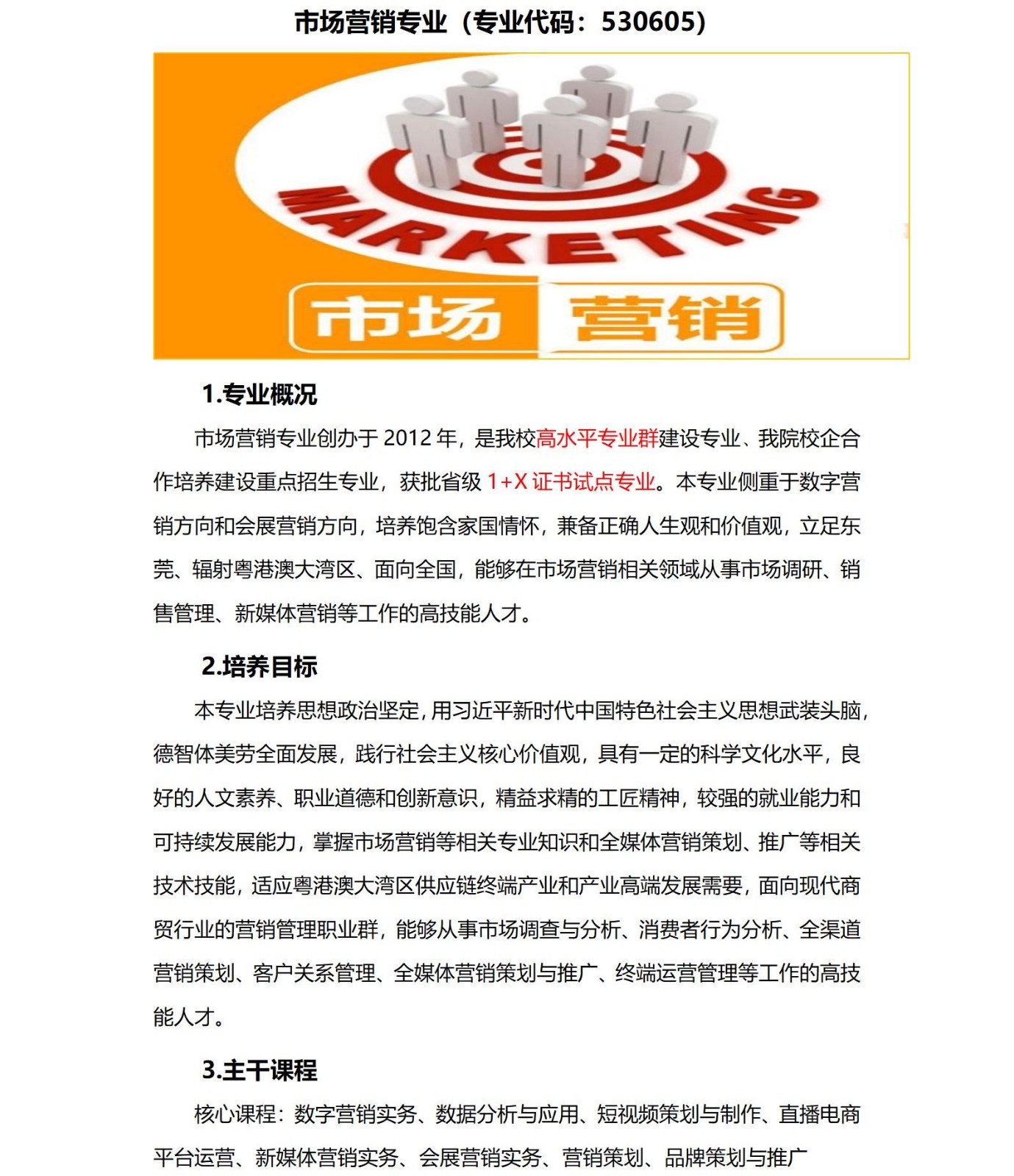 市场营销专业(专业代码:530605)