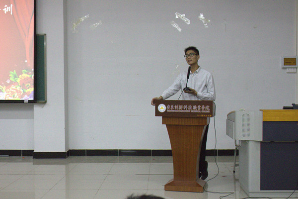 大会开始,请全体起立、奏国歌,在庄严的国歌声中拉开了帷幕。接着,由周勇老师上台作动员与干部培训讲话,讲述了学院的学风建设和纪律要求,要求全体学生做到六不准,不准晚归,不准迟到,不准早退,不准穿拖鞋入公共教学场所,不准带早餐进教室,不准在公共场所吸烟;这是建设学风建设的第一步。周勇老师还鼓励学生在到课纪律方面要求做到全勤,达到目标的同学进行评选优秀班级,全勤宿舍,全勤个人奖等各项奖励。