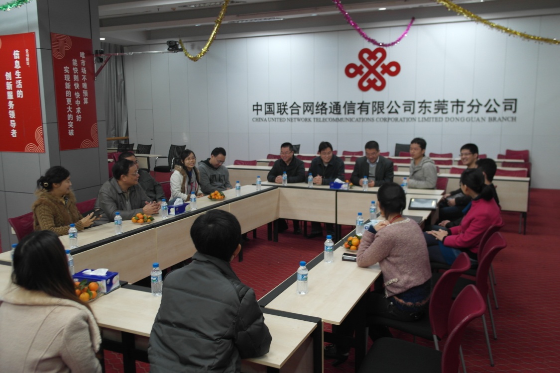 2013年1月16日上午,计算机与通信系计算机应用技术教研室专业教师李竺、周涛等一行15人在柳副院长的带领下,赴中国联通东莞分公司参观交流。