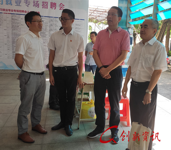 学校副校长陈粟宋(前右一)莅临现场指导工作并与用人单位交流